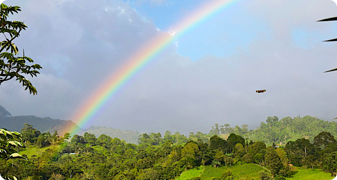 We are located at 1700 m.a.s.l., halfway up the western slope of the Eastern Cordillera of the Colombian Andes. Not only do we enjoy a mild climate, we are visited by many species as they migrate up and down the mountains.