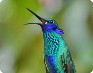 The loud and flamboyant fighter, the Sparkling Violetear (Colibri coruscans).