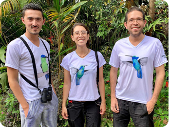 A large group of biologists coordinated by Alejandro Rico-Guevara and Kristiina Hurme study hummingbirds at the Centro de Investigación Colibrí Gorriazul.